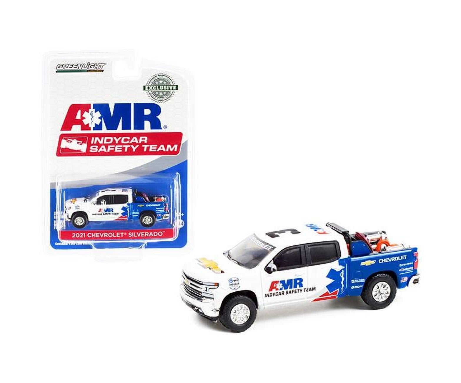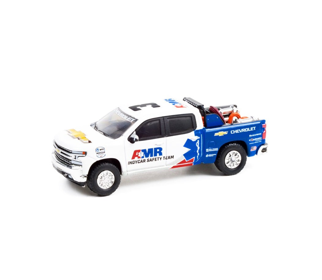 Greenlight - Modèle réduit de camionnette Chevrolet Silverado 2021 avec équipement de sécurité intégré à la benne. Série NTT IndyCar. Exclusivité Hobby. Greenlight - Échelle 1/64.