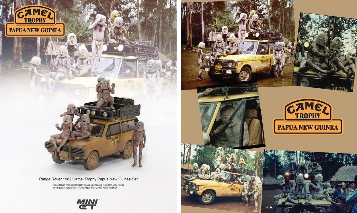 Mini GT - Coffret Range Rover Camel Trophy Papouasie-Nouvelle-Guinée 1982 - Échelle 1/64 MGTS0006